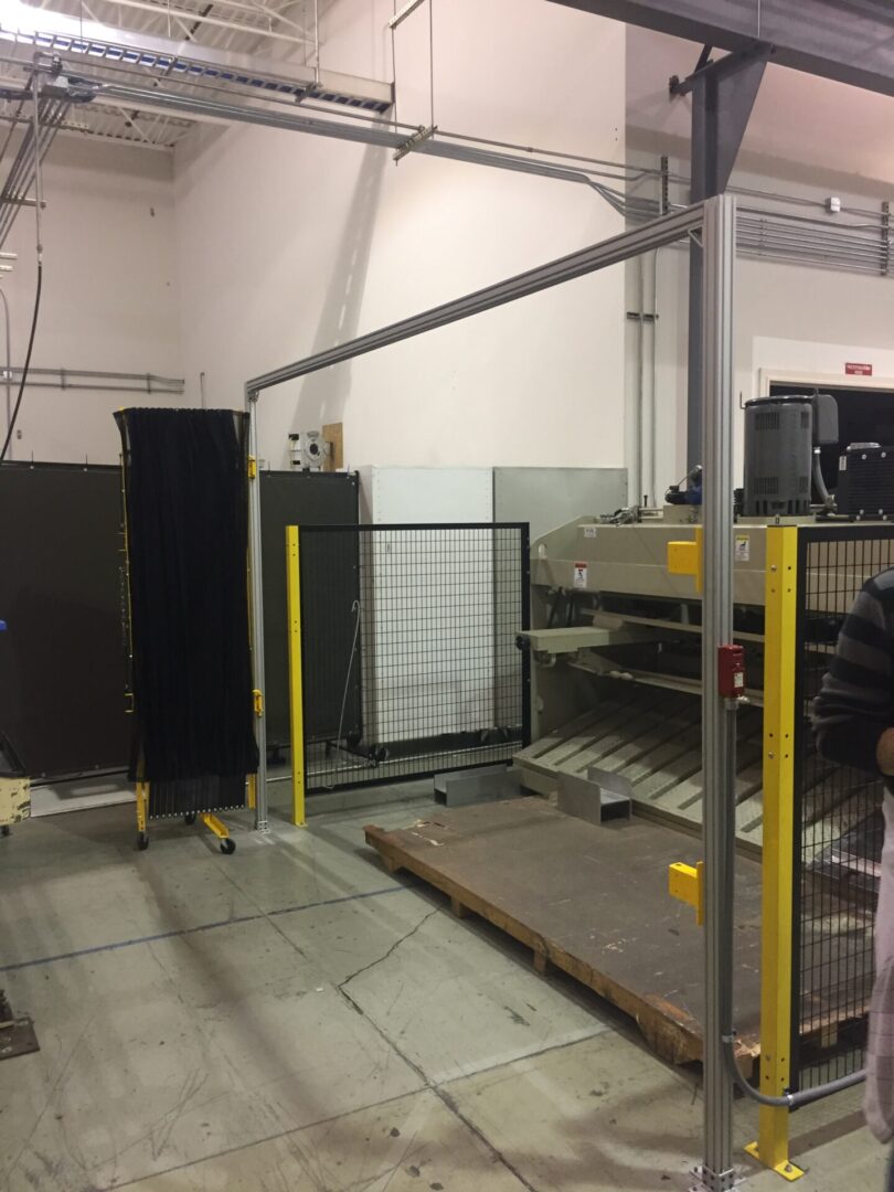 Expandable rear guarding scissor style gating for guarding areas that require quick and easy access. These scissor gates can span up to 30 feet and are electrically interlocked. These style gates protect personnel from hazards and are particularly useful when applied to the rear area of shears, power presses and press brakes. We offer customizable sizes and side panel “wing” panels to fit the application.
